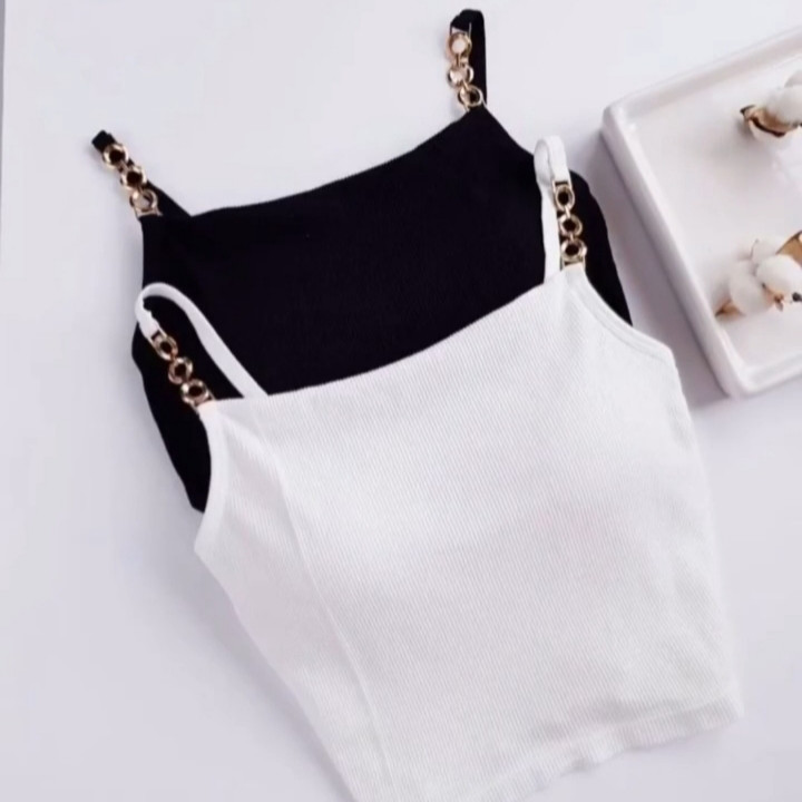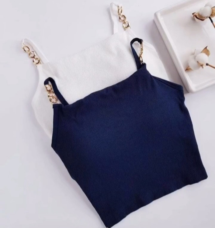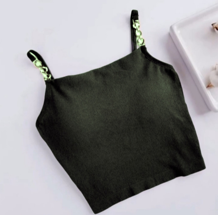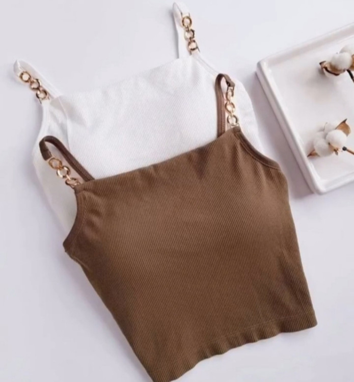 کراپ تاپ دخترانه کاپدار ،زنجیر رنگ ثابت و ضد حساسیت، کاپ ثابت، جنس تمام نخ کبریتی، فری سایز مناسب سایز بدنی ۳۶تا ۴۰ و سایز سینه ۶۰ تا ۸۰