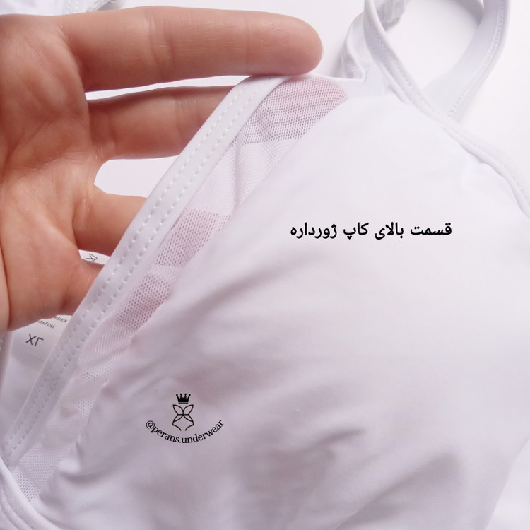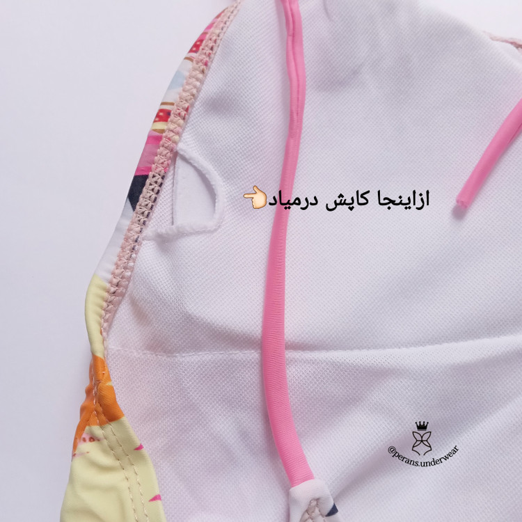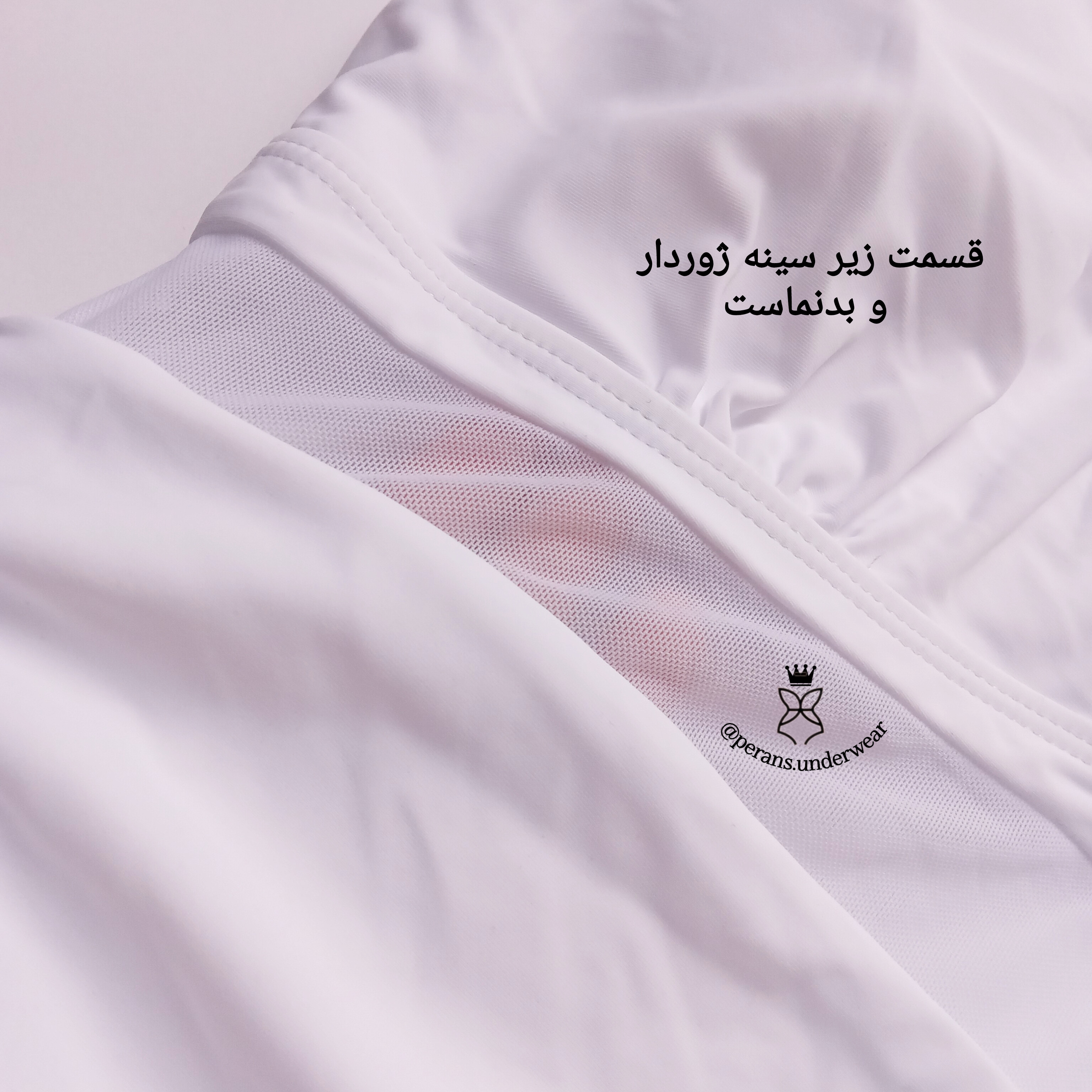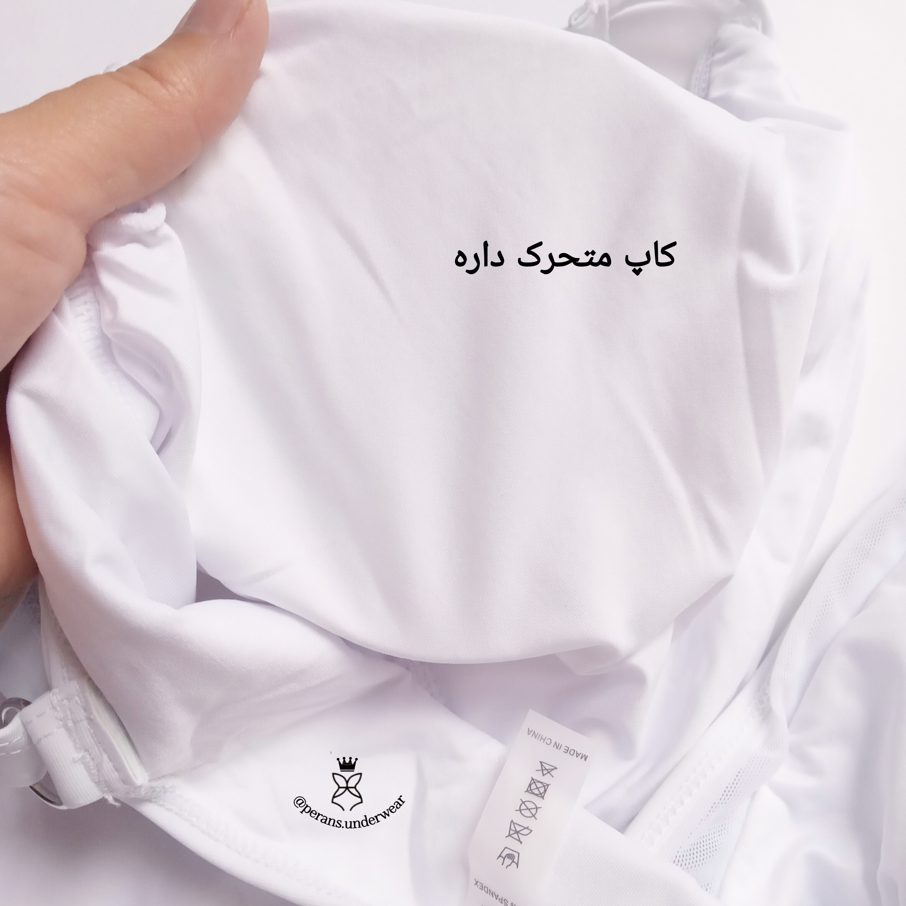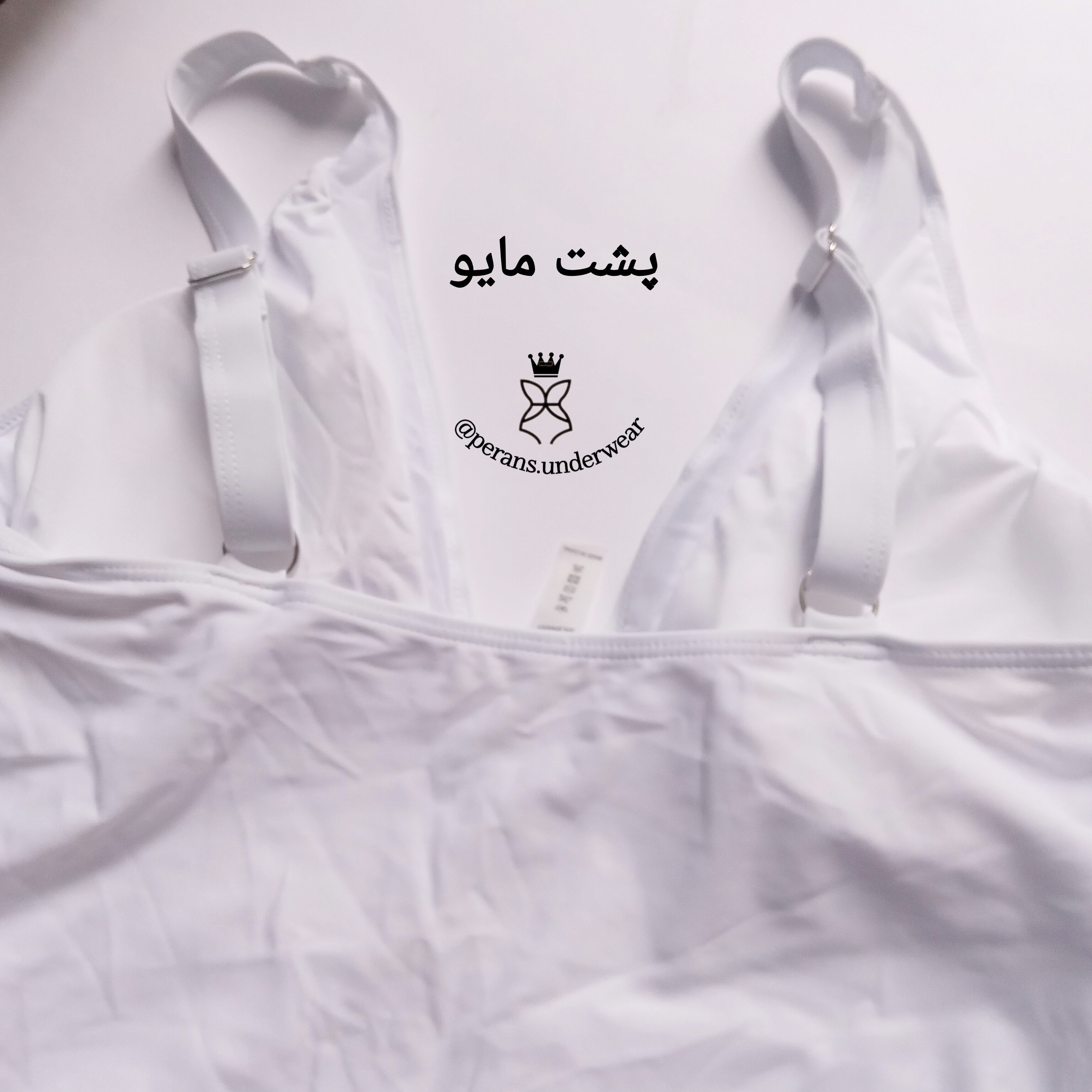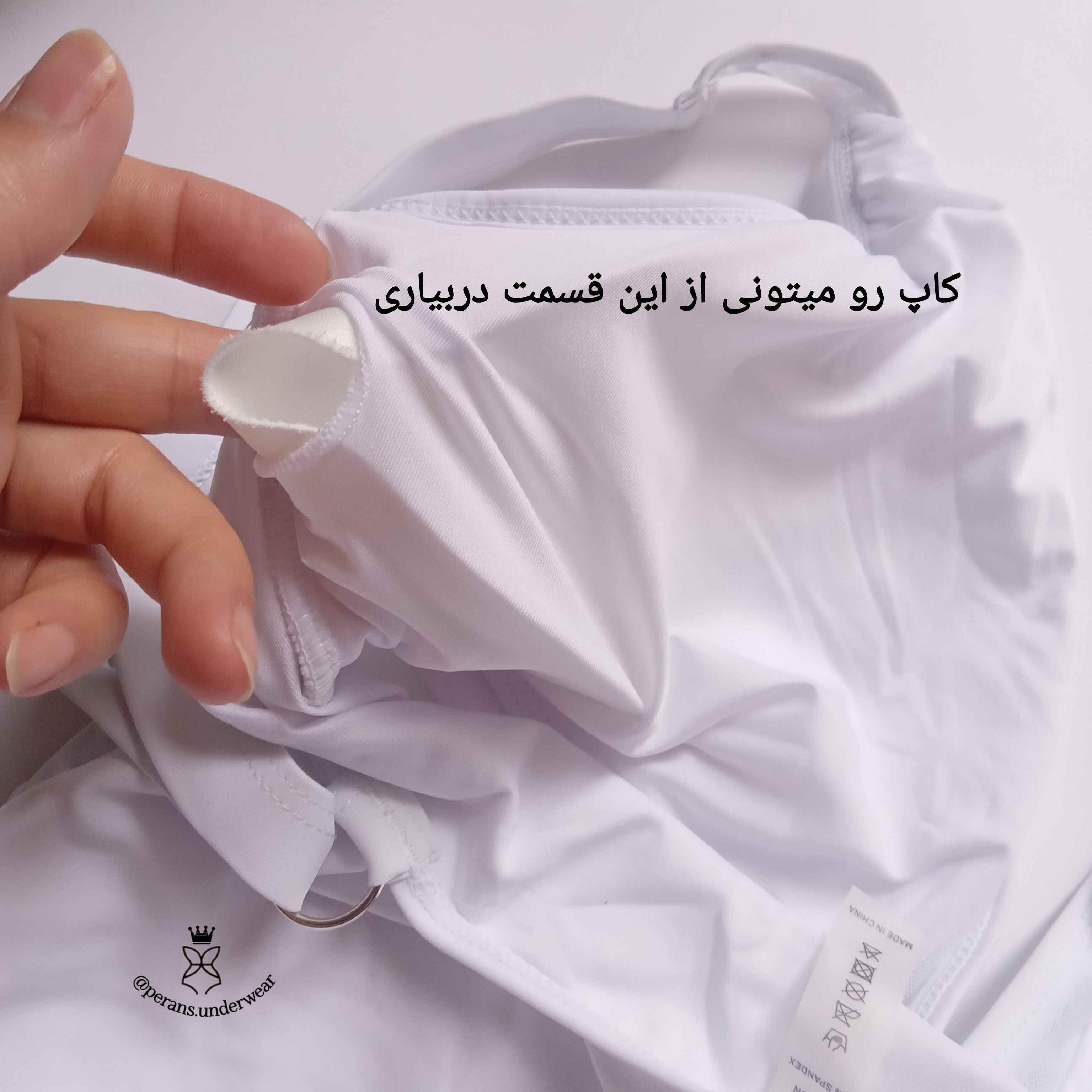مایو سفید کاپدار است و از قسمت داخل کاپ قابل جابجایی است